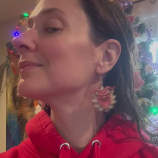 Krampus Couture!!! These unique Krampus earrings are perfect holiday addition to any wardrobe. They are about 2 inches long and 2 inches wide. Made from solid Wisconsin maple. They come with a small gift box. Supplies limited so get them while they last! Free shipping in the US.